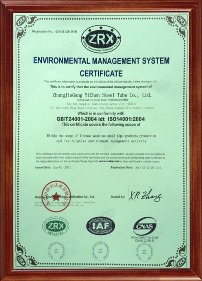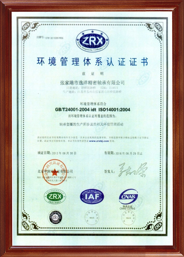 環(huán)境管理體系認(rèn)證證書(shū)
